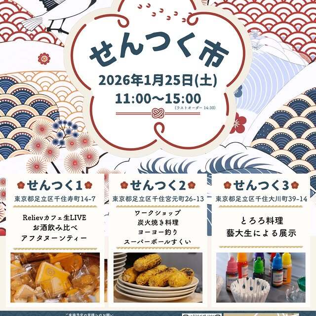 あたたかいお食事やお酒、生LIVE、展示、ワークショップなど、